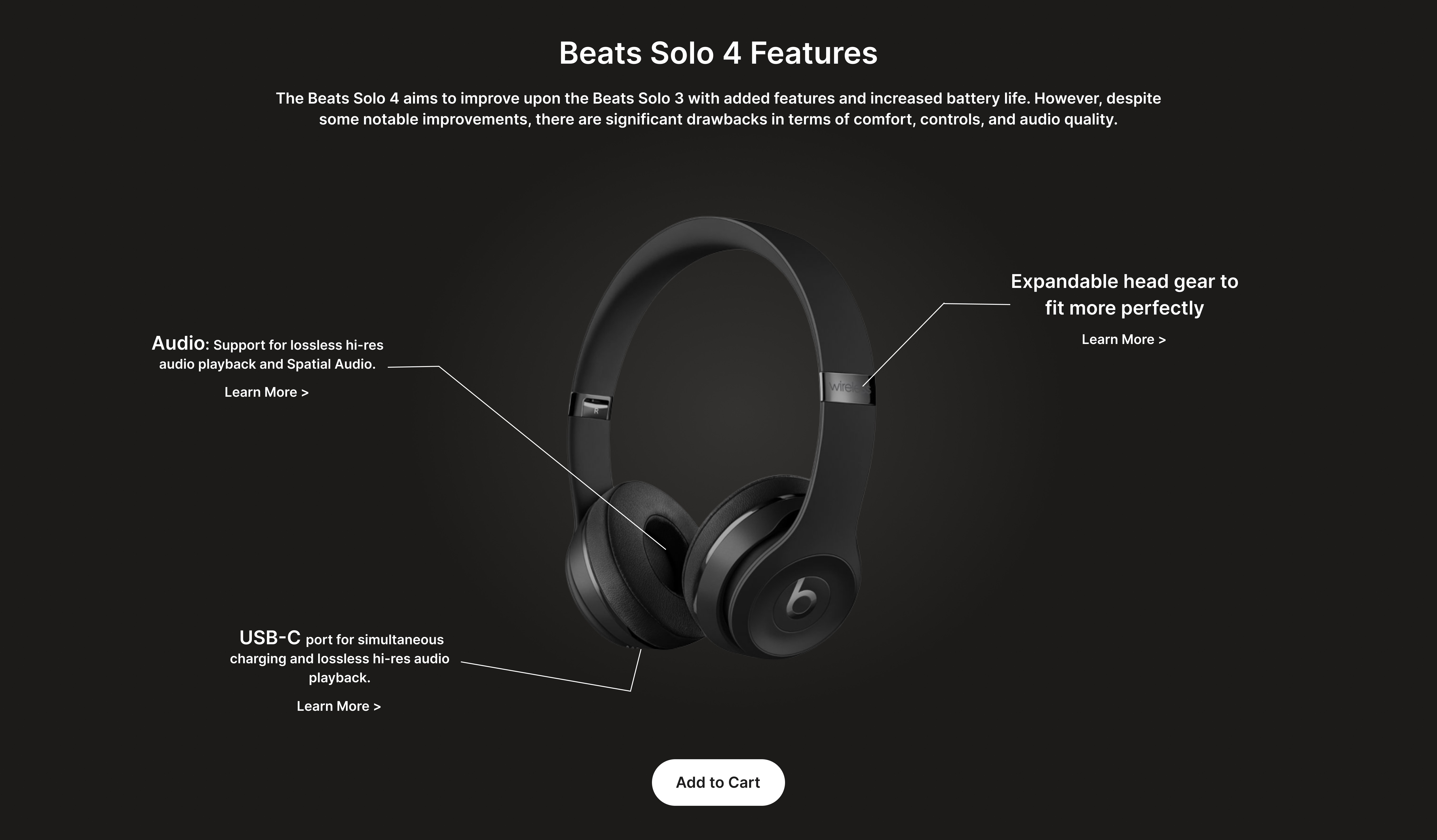 The challenge was to create a sleek, modern, and visually engaging landing page for the Beats Solo 4 headphones that highlights product features, design, accessories, and pricing in a way that improves user experience and drives conversions.