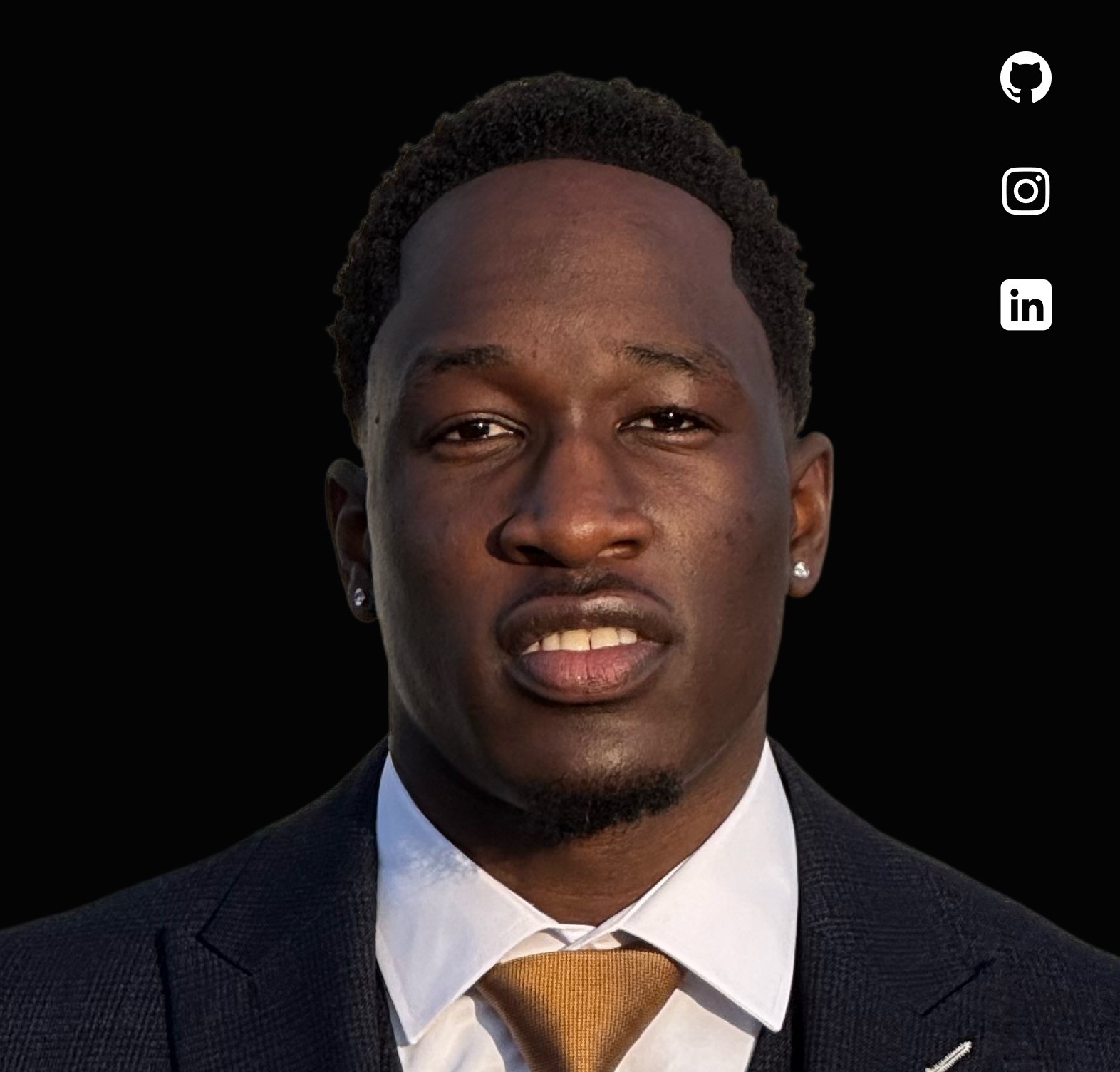 Call to Action: Easy access to social links (GitHub, Instagram, LinkedIn) for credibility and networking.